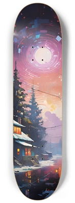 7-Ply 100% Canadian Maple Deck with High Resolution graphic applied. Tags: dream world land dreamland fantasy nature sci-fi landscape artwork winter snow cabin orange house pink sun christmas holiday